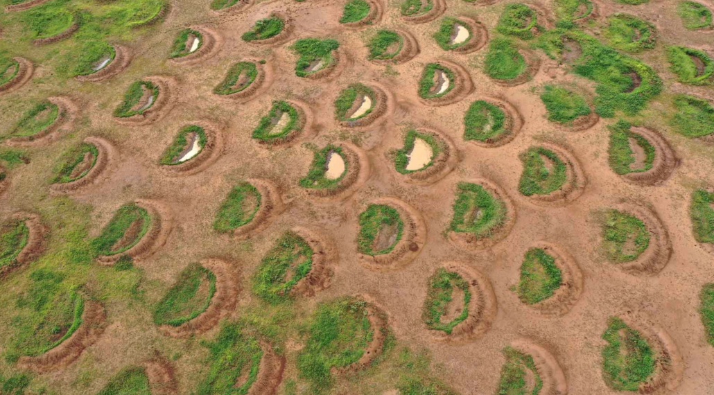 La soluzione individuata per ripristinare la vita vegetale in aree dell’Africa attualmente sottoposte a inaridimento, erosione e desertificazione è effettivamente semplice quanto ingegnosa: scavare buche larghe circa 5 metri e lunghe poco più di 2, lungo i pendii. In questo modo, riescono a intercettare l’acqua che scorre lungo il suo percorso naturale. La terra rimossa per ottenere la buca viene ammucchiata intorno al bordo inferiore. In questo modo, la piccola vasca che si crea può raccogliere la preziosa acqua piovana, aumentando la disponibilità d’acqua. E i risultati sono piuttosto rapidi: in poco tempo, le piante tornano a crescere, invertendo il processo di desertificazione.